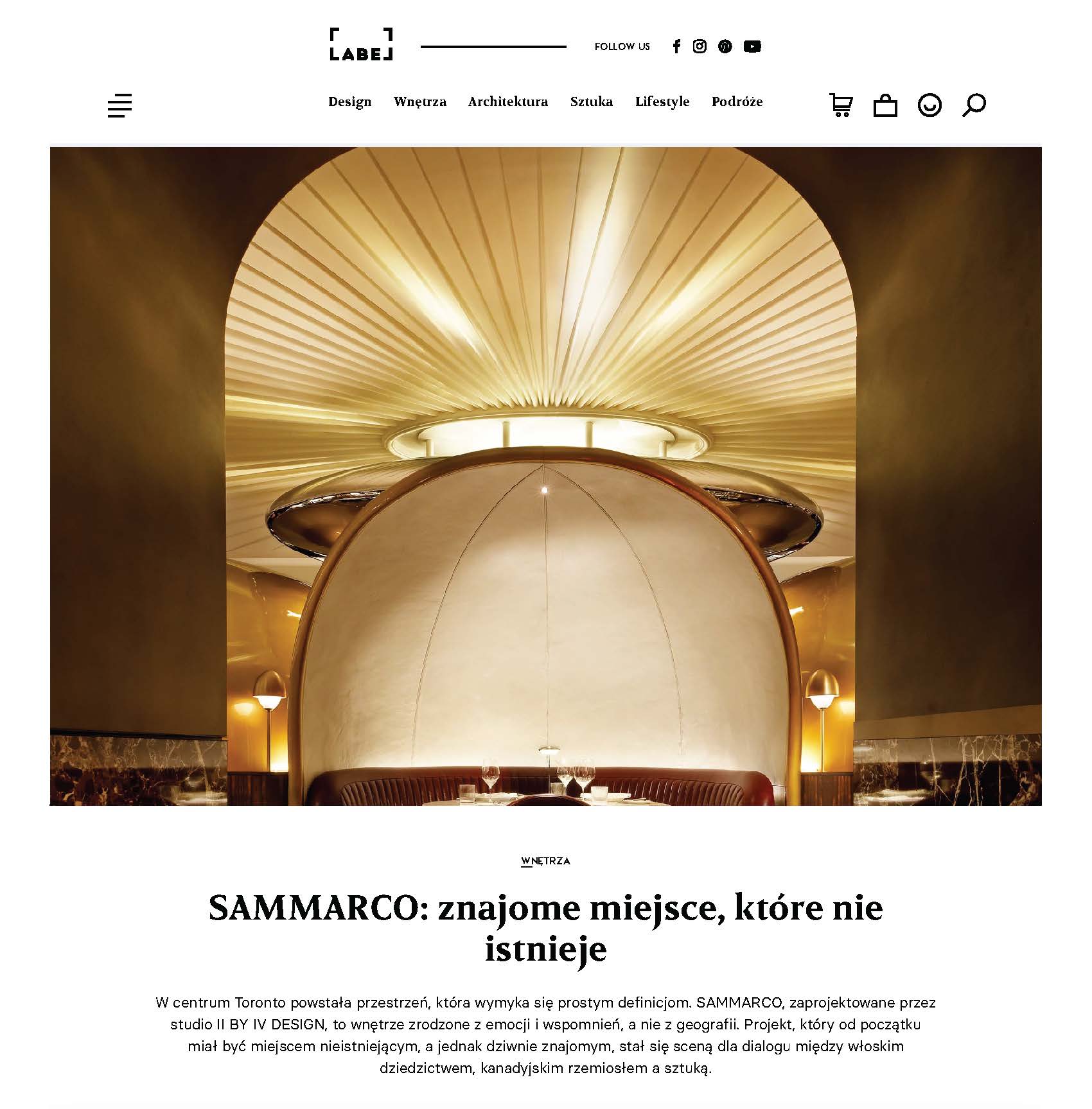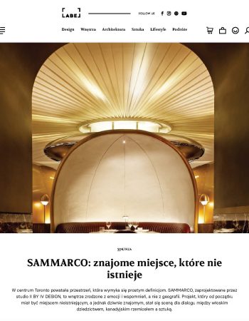 October 2025 – Label Magazine, based in Poland, is an international design and lifestyle publication that showcases innovative architecture, interiors, art, and travel. In this feature, Label Magazine explores our conceptual project SAMMARCO—a Toronto interior that evokes a familiar place which doesn’t truly exist, merging Italian heritage with Canadian craftsmanship.